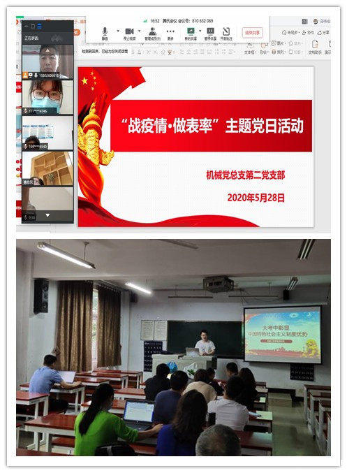 为深入学习贯彻习近平总书记在统筹推进新冠肺炎疫情防控和经济社会发展工作部署会议上的系列重要讲话精神,切实提高党组织的凝聚力、战斗力,近日,机械工程学院各党支部集中开展了形式多样的主题党日活动。