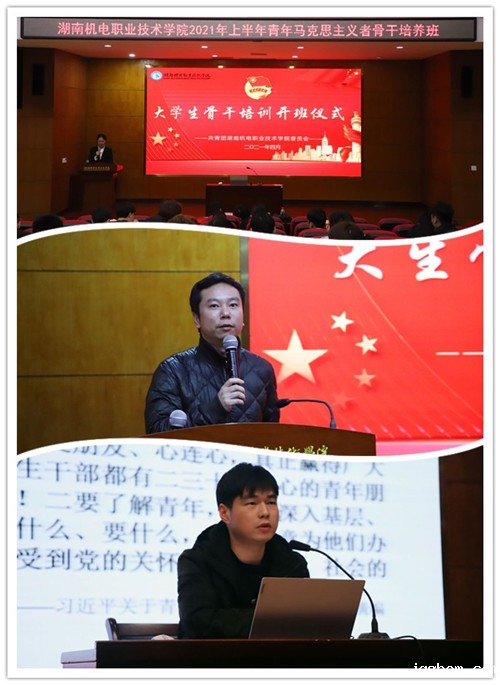 为加强学生干部的综合素质,建设一支勤奋好学、勇于创新、全心全意为广大青年团员服务的团干部队伍,4月6日晚7点,学院在多功能报告厅举行2021年大学生青年马克思主义者骨干培训班开班仪式。院团委书记宋洋,信息工程学院党总支副书记施佳出席开班仪式。