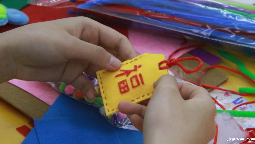 活动现场气氛热烈,同学们围坐一堂,桌上摆满五颜六色的扭扭棒、卡片、针线等材料。大家发挥创意,裁剪、缝制、装饰……一双双巧手将普通材料变为精美的花束、福袋等手工艺品。在制作过程中,互助小组随处可见——有人耐心指导穿针引线,有人分享设计灵感,欢声笑语中凝聚着青春的温度。